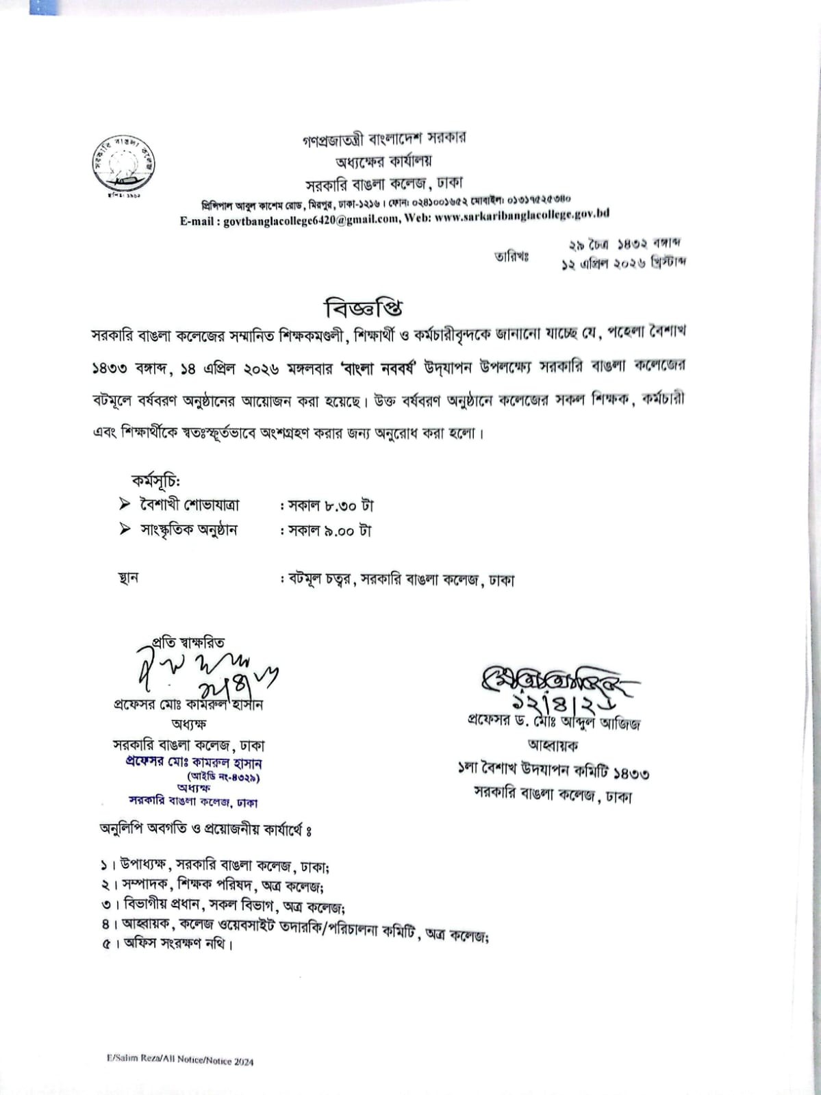 পহেলা বৈশাখ-১৪৩৩ উদযাপন সংক্রান্ত